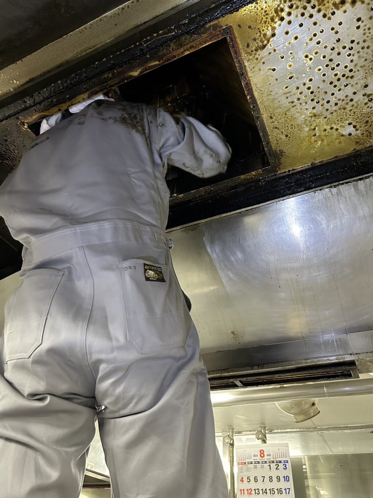 排気設備の油汚れ等を徹底的に除去し、良好な排気状態と、引火防止を実現します。